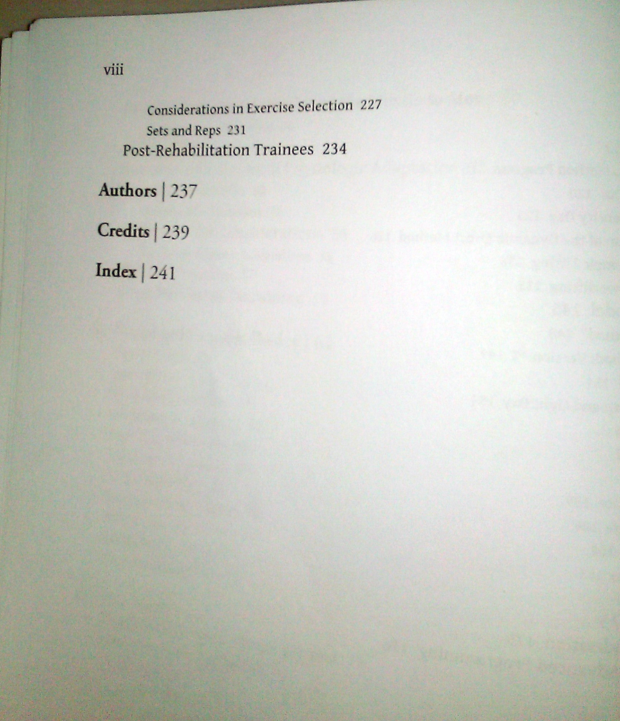 The third edition is a vast, vast improvement upon the second for those of you who intend to use the material to make changes to your own training. As in previous editions, the book starts with a cursory discussion and analysis of exercise science as a whole. While I could easily spend several paragraphs explaining the first five chapters, I’d rather just show you the table of contents so you can see for yourself.